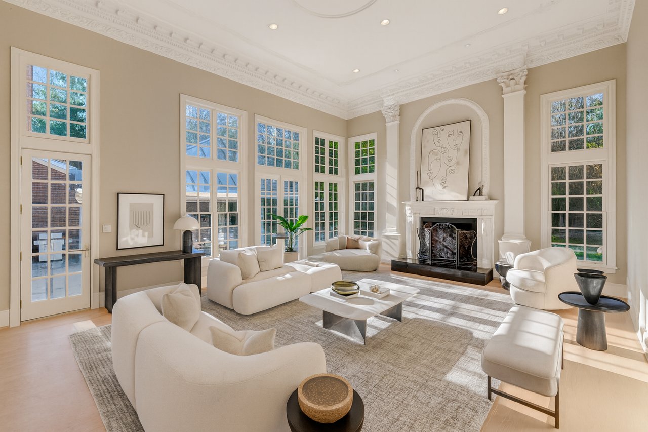 The moment you step inside, the home enchants with 10’ ceilings, refinished hardwood floors, elegant crown moldings, and a dramatic 20’ Grand Salon wrapped in two-story windows overlooking the pool deck. With 4 fireplaces, dual laundry rooms, and a built-in speaker system across all levels, every detail of this residence has been crafted for comfort, beauty, and function.
